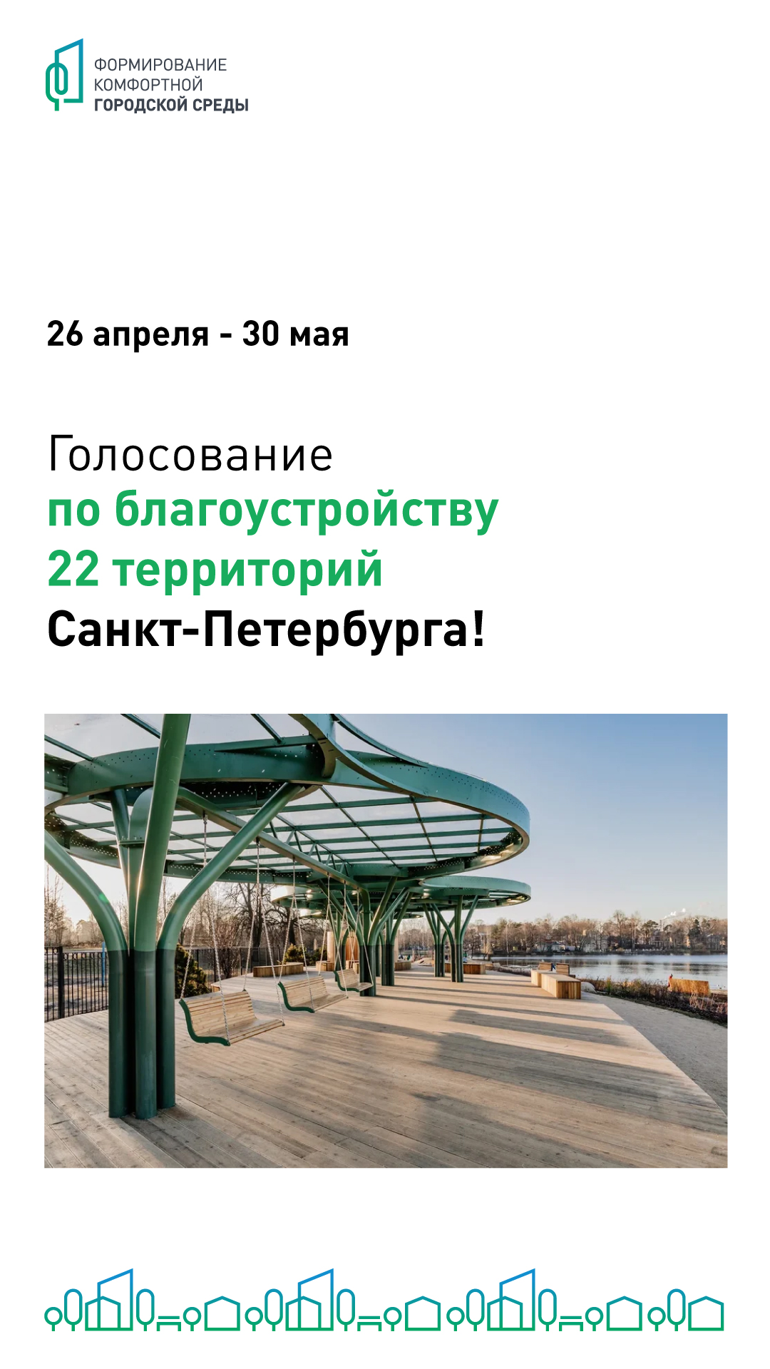 В период с 26 апреля по 30 мая в рамках федерального проекта «Формирование комфортной городской среды» на портале za.gorodsreda.ru пройдет голосование за благоустройство 22 городских территорий.