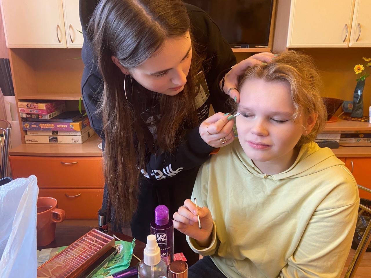 Если не полностью, то во многом абсолютно точно зависит от нас самих. Одним из подтверждений этому стал прошедший в наших стенах мастер — класс по визажу. Конечно же не без помощи наших друзей доброделов. Что также доказывает, что нас должны окружать друзья, надёжное плечо. Нашим воспитанникам предоставилась возможность загадать желание и ву-а-ля! Запрос на проведение мастер — класса реализован. Девченок не узнать. Это прекрасный позитивный опыт, на многое открывает глаза, сердце. Всё будет хорошо!
